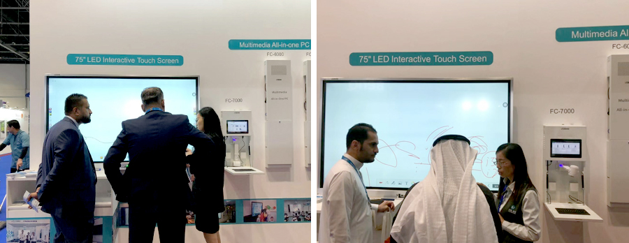 于教育技術(shù)的展會。2019年2月26日至28日,在迪拜世界貿(mào)易中心方成教學(xué)攜最新款液晶一體機亮相     。此款液晶一體機以新穎的銀色超